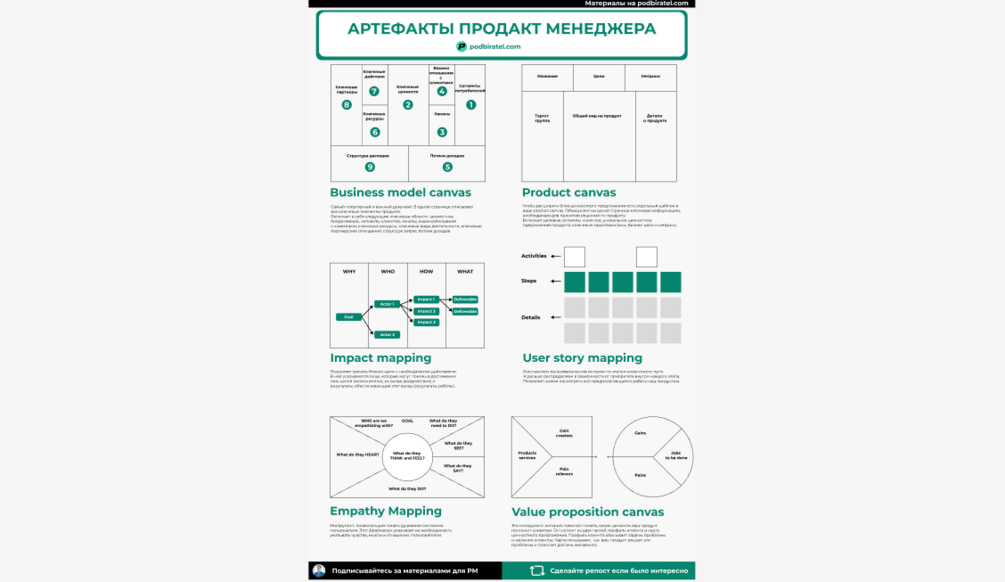 Перечень из 6 важных артефактов для продакт менеджера, которые обязательно надо заполнить