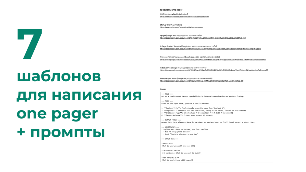 Шаблоны и промпты для написания one pager продукта