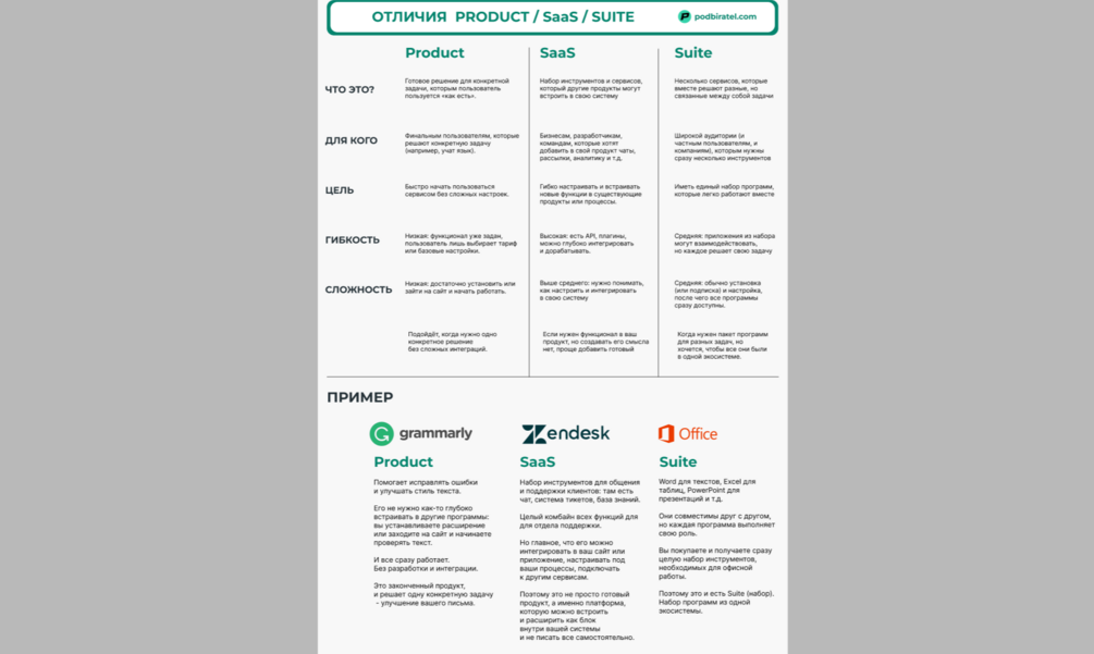 Ключевые отличия и примеры что такое Product / SaaS / suite в PDF формате