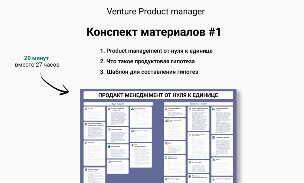 Краткая версия 4 книг, 28 статей и 9 видео по продакт менеджменту о том как создавать продукты от нуля к единице, что такое продуктовая гипотеза и как ее записать.